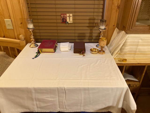 Tabernacle and altar table set in the hallway