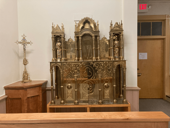 1894 AD: On August 4th, a year after the August 1st consecration to St. Peter, a public “translation” is done with the relics into the newly made reliquary altar piece. (Pgs. 35-53 in the 1897 book give the sermons and letters delivered on the occasion, as printed the next day in the Burlington Free Press.)